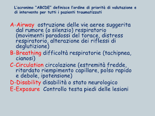 L’acronimo “ABCDE” definisce l’ordine di priorità di valutazione e